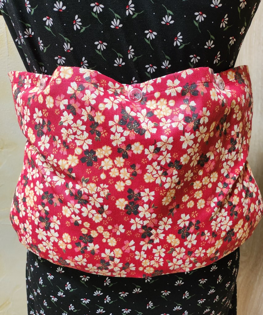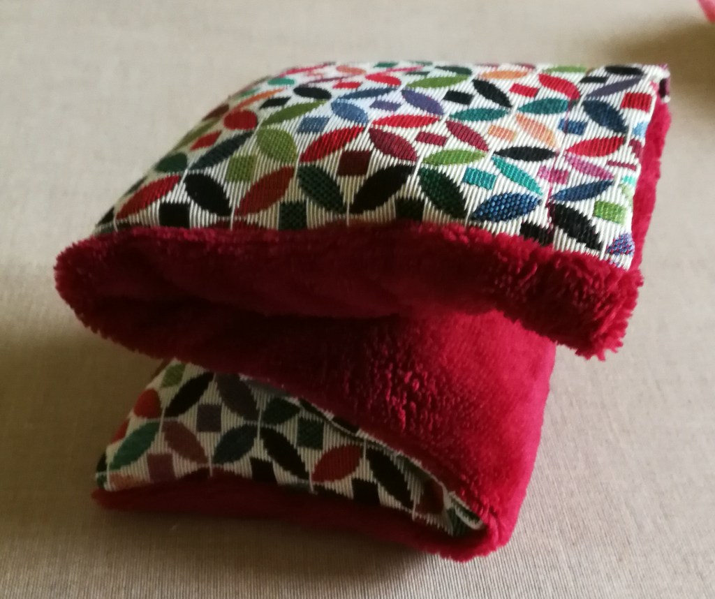Utilisation : Au micro-onde à puissance 700W maximum 2 à 3 minutes. Elle restera chaude environ 1 à 2h.