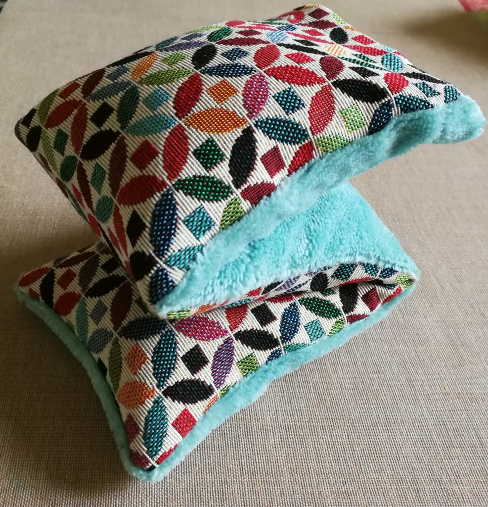 Elle peut également vous servir de bouillotte l’hiver dans le lit, dans la poussette… Elle est composée de textile en coton et entièrement garnie de graines de lin.