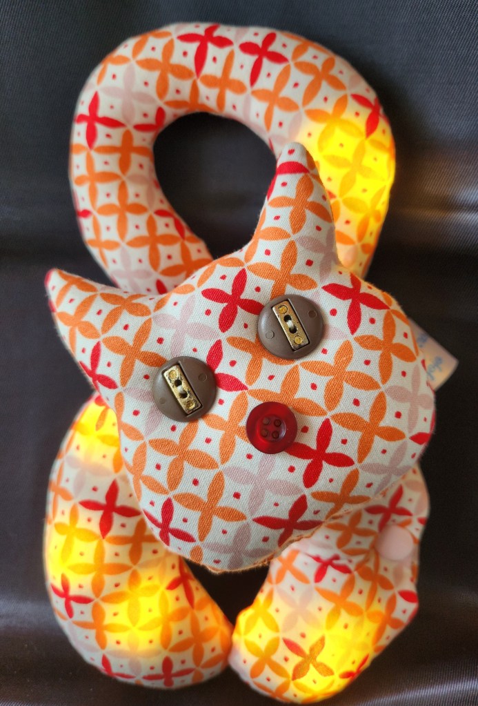 Cette veilleuse n’est pas un doudou, il y a des boutons qui peuvent être dangereux pour les plus petits.